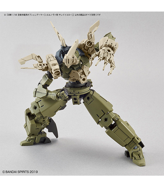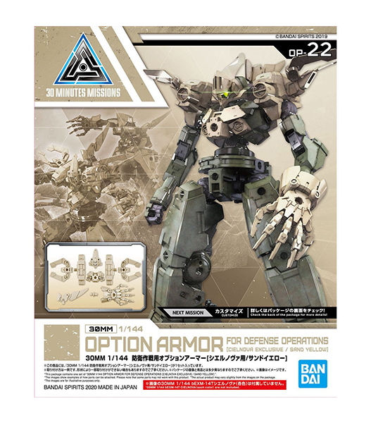 30MMのオプションアーマーシリーズにサンドイエローのシエルノヴァ用アイテムが登場! ■アーマー一式と大型ハンドパーツのセット。 ■アーマーは開閉ギミックを搭載。 【付属品】 ■アーマー×一式 ■大型ハンドパーツ×1
