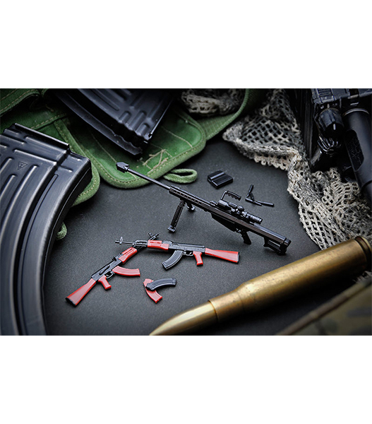 リアルさと可動フィギュアとの組み合わせを両立した1/12スケール組み立てキット「リトルアーモリー」。新作の第5弾は、世界中で使われる傑作突撃銃と、対物ライフルの決定版が登場!