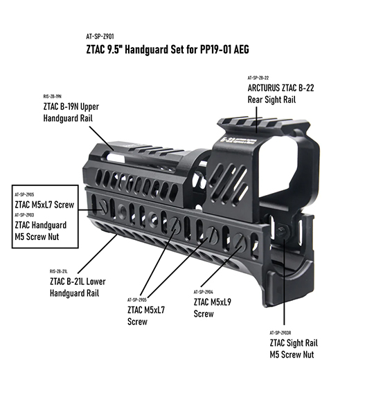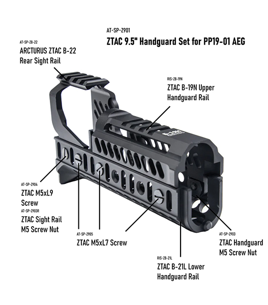 ・ARCTURUS ZTAC 9.5" Handguard Set for PP19-01 AEG (AT-SP-Z901 )