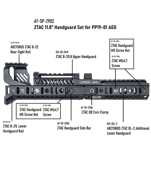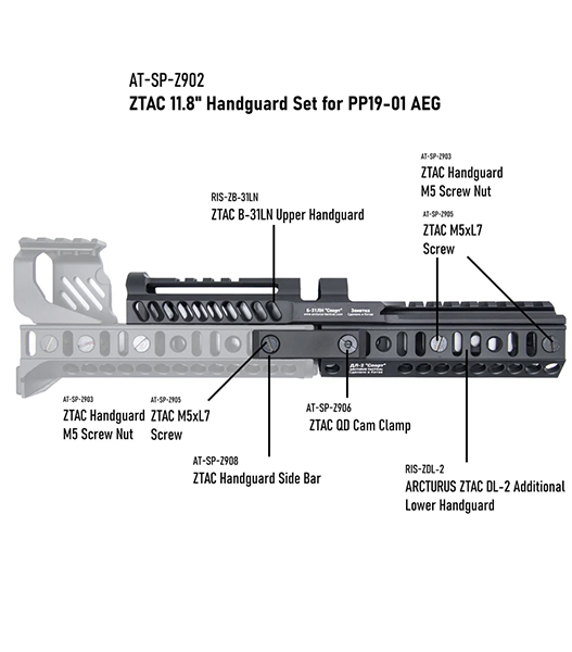 ・ARCTURUS ZTAC 11.8" Handguard Set for PP19-01 AEG (AT-SP-Z902)