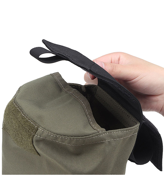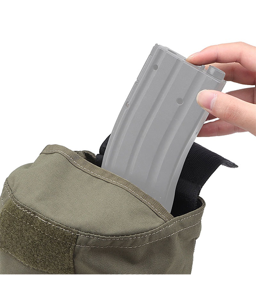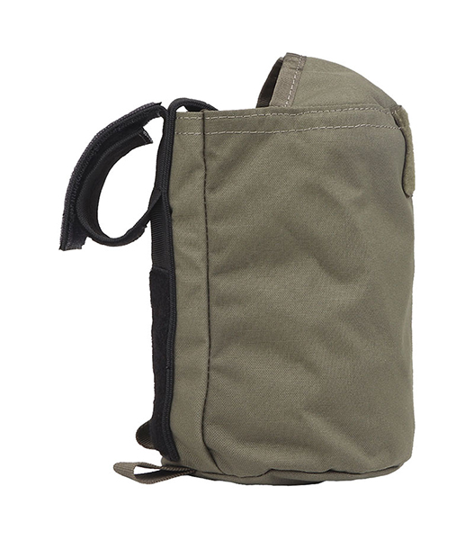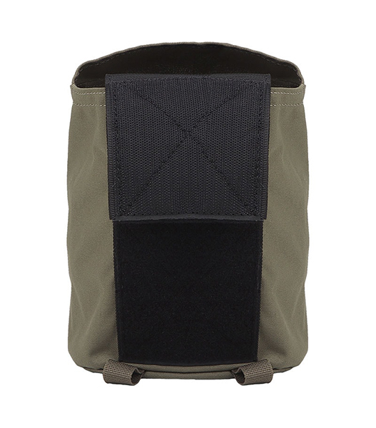 手元部分が解放されたフラップカバーダンプポーチ。 空マガジンやグローブ、不要な消耗品などの収納など様々な用途で活躍します。 また、フラップカバーが縫製されているため、開口部を閉じておくことも可能で、雨や粉塵などから保護することもできます。 装着は大型のタクティカルベルトなどにも装着可能な、ベルクロ式のベルト固定ストラップによって行います。