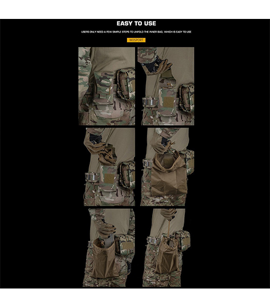 WoSporT概要Wosport製「Quick deployment recycling bag」は、コンパクトに折り畳んで携行でき、必要な時に瞬時に展開できるダンプポーチです。