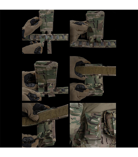 ・MOLLEシステム対応で、ベルトやプレキャリなどに簡単装着