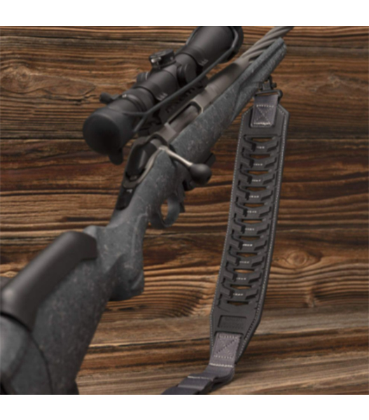 狩猟時にライフルを担いで肩掛けした際に最適なスリング「Baktrak Traverse Sling (バックトラック トラバースリング)」。