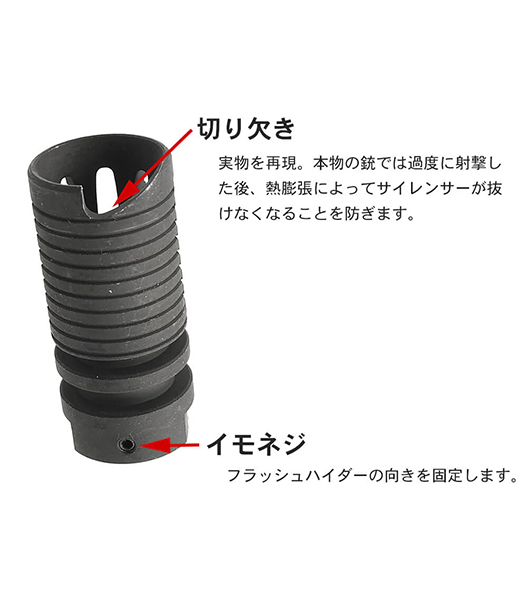 素材:サプレッサー:アルミニウム合金、フラッシュハイダー:スチール