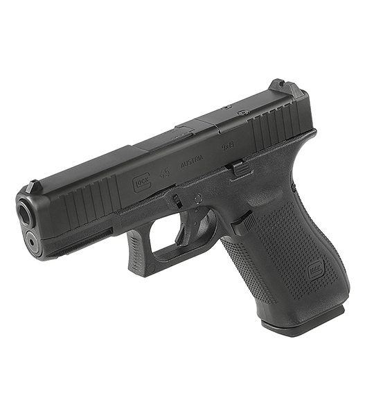 GLOCK 45は2018年に登場した9mm口径の自動拳銃で、GLOCK社第5世代のクロスオーバーモデルです。コンパクトなスライド(G19相当)とフルサイズのフレーム(G17相当)を組み合わせ、法執行機関向けに設計されました。先行モデルG19Xの成功を受けて開発され、ブラック仕上げや前部スライドセレーション、アンビデクストラス操作系、高精度バレルなどGen5仕様が特徴です。フルサイズグリップによる安定性と、コンパクトスライドによる操作性を両立し、信頼性と実用性に優れています。現在、アメリカの複数の法執行機関で採用されており、光学機器対応のMOSバージョンも展開されています。