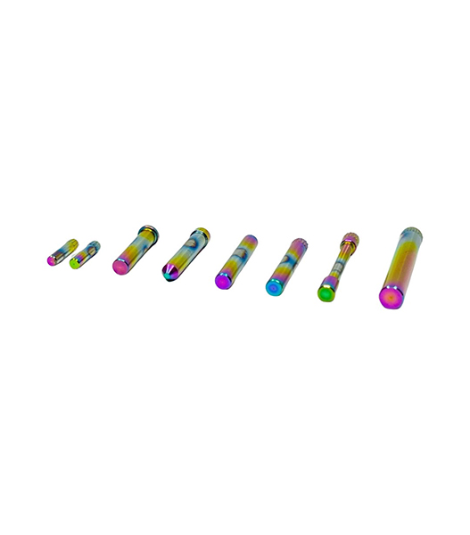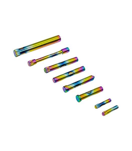 主要ピンを高精度ステンレス化しガタを低減。レインボーメッキ仕様はドレスアップにも最適。材質:ステンレススチール