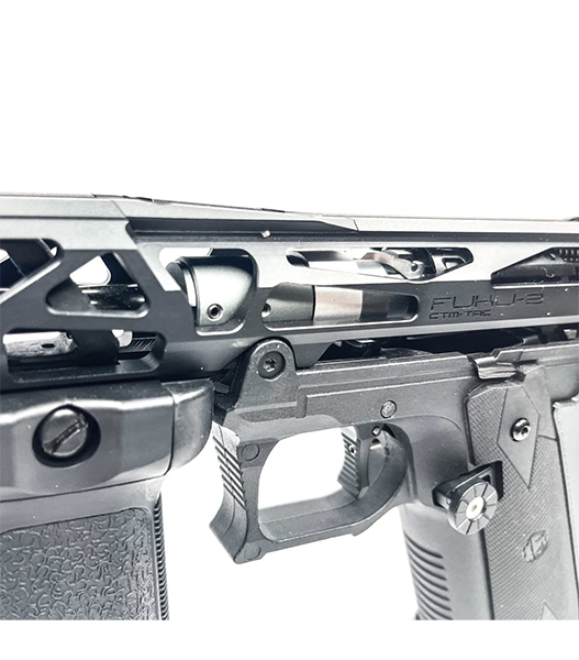 CTM TAC1. より軽量で丈夫な新設計。2. 強化されたネジ穴設計により、より高い強度とより厳しい公差を実現。3. 前方に取り付けられたRMRと改良されたアイアンサイトにより、より鮮明で正確な視界を実現。4. オリジナルのFuku-2とFuku-2 Skeletonのアウターバレル(バケット)は互換性あり