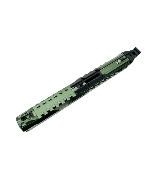CTM TAC特徴 : ? すべてのコンポーネントは、完全なCNC加工を使用して精密に製造されています。? サメの形と美学からインスピレーションを得たデザインで、長いバージョンと短いバージョンの2つがあります。? 上部はピカティニー設計で、ピカティニーシステムのあらゆる光学機器と互換性があります。