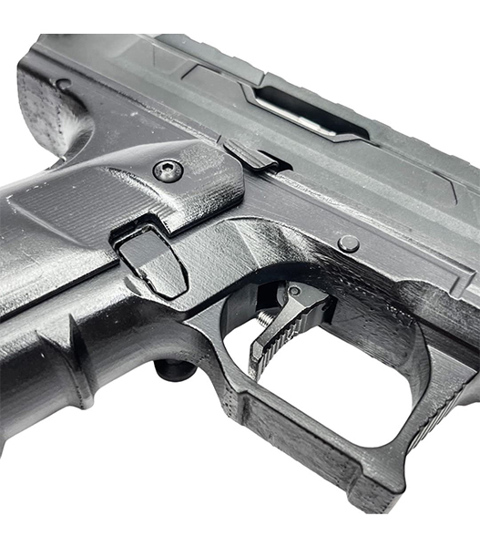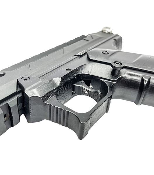 スピードシューティング向け軽量トリガー。ストローク調整機構付き。材質:6061アルミニウム。