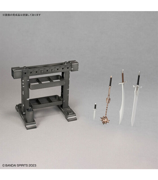 ■「武器ラック」は別売りのフェイスやアーマー、武装などの様々なパーツのディスプレイが可能。
