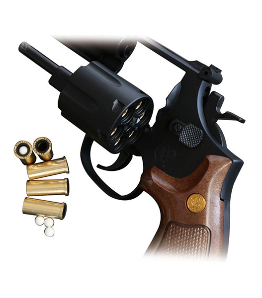 本格派のリボルバーデザインに、木目調グリップを採用し、見た目にも高級感のある仕上がりとなっています。