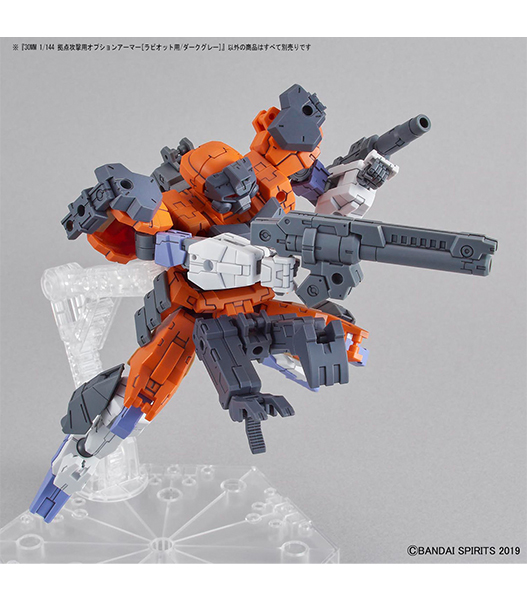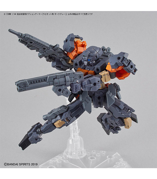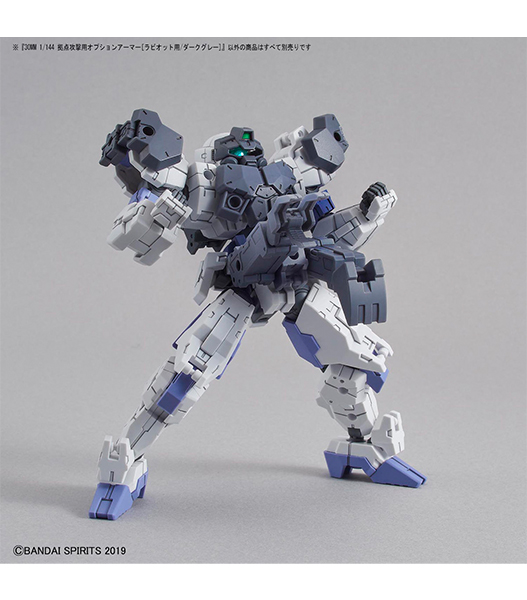 30MMシリーズ地球連合軍の「eEXM-21 ラビオット」のオプションアーマーにダークグレーが登場! ■アーマー一式とアームユニットのセット。シール付属。 ■アルトにもカスタマイズ可能。 ■ロイロイ用カスタマイズパーツとしても使える。 【付属品】 ■アーマー×1式 ■アームユニット×1 ■シール×1