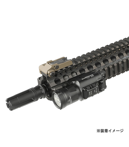 アンダーレイルのあるハンドガン等に取り付け可能。またアダプター取り付けで20mmレイル対応になり、ライフルやヘルメット等に使用することも可能になります。