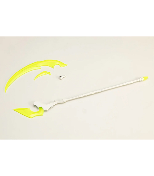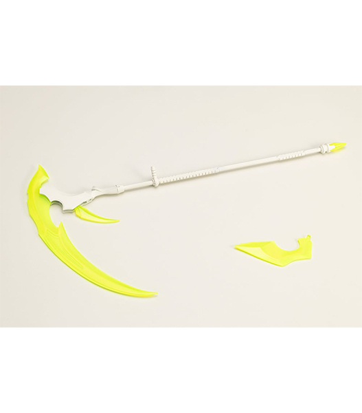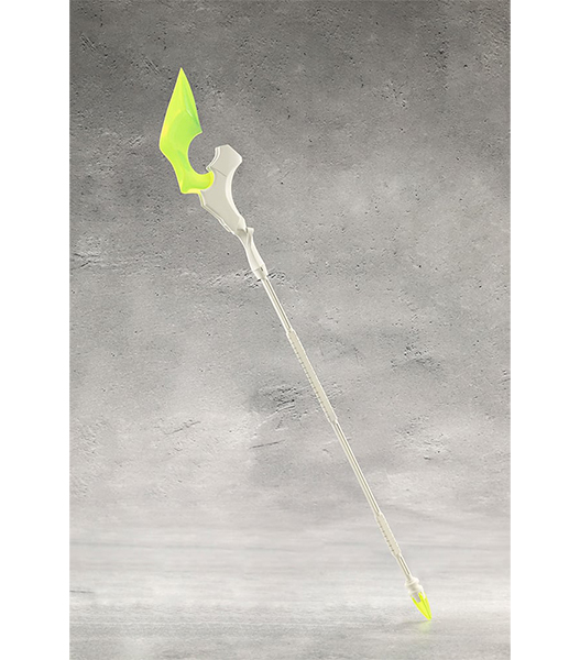刃部分はクリアー成型となっており、刃部分の交換で基本形態の「カース・リーパー(大鎌形態)」のほかに「マジックスタッフ(杖形態)」として遊ぶことが可能です。
