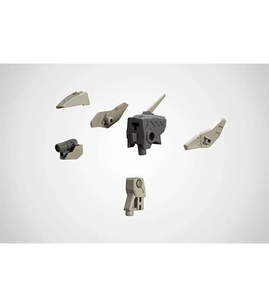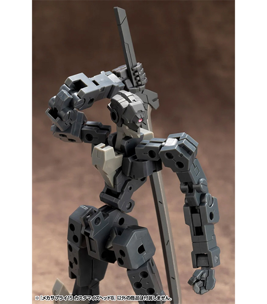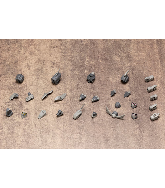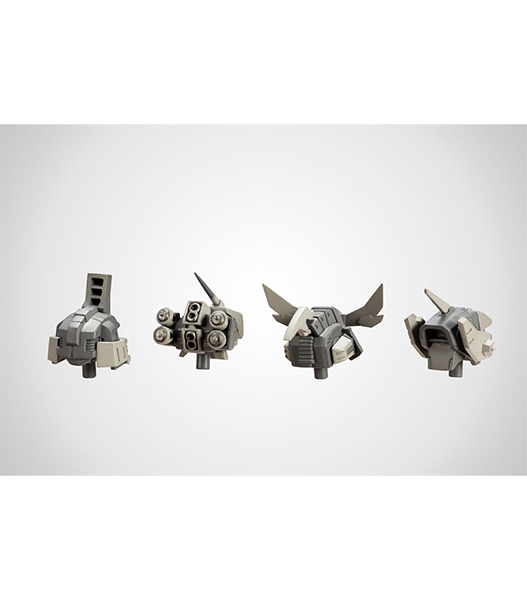 4種類の頭部とフレームアームズに対応する首ジョイントが付属し頭部ユニットを構成する各パーツの組み換えにより100通り以上の組み合わせを実現しました。