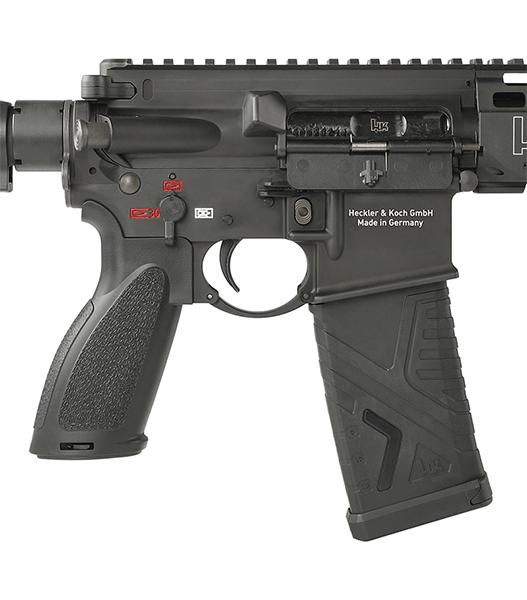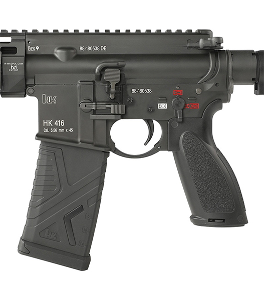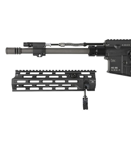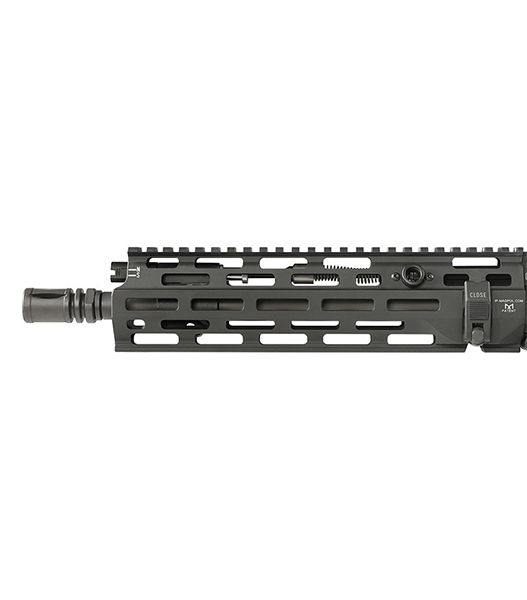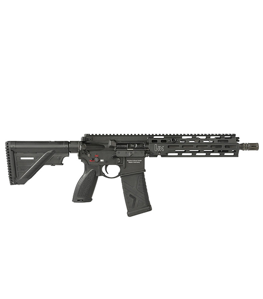 HK416A5は、ドイツのHeckler & Koch社が開発したHK416シリーズの改良型アサルトライフルで、5.56×45mm NATO弾を使用し、ショートストロークガスピストン方式を採用しています。高い信頼性と整備性を備え、過酷な環境でも安定した作動性能を誇ります。A5モデルでは、サプレッサー運用に対応したツール不要の2段階式ガスレギュレーター、アンビ仕様セレクター、操作性を高めた大型チャージングハンドル、高耐久の冷間鍛造バレルなどが特徴です。加えて、最新型にあたるA8では、軽量M-LOKハンドガードや改良トリガー、さらなる軽量化が施され、ドイツ連邦軍には「G95A1」として採用されています。フランス軍でもHK416Fとして制式採用されており、米海兵隊でもM27 IARの名称で運用されています。優れた耐久性・精度・モジュール性から、現代の制式小銃の中でも特に信頼性の高いモデルとして世界中の軍・法執行機関で広く使用されています。