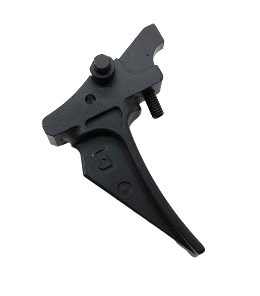僅かにラウンドしたディテールや軽量化のためのライトニング、Gのロゴマーキングなど、実銃でも人気のガイズリートリガーを余すことなくトレース。