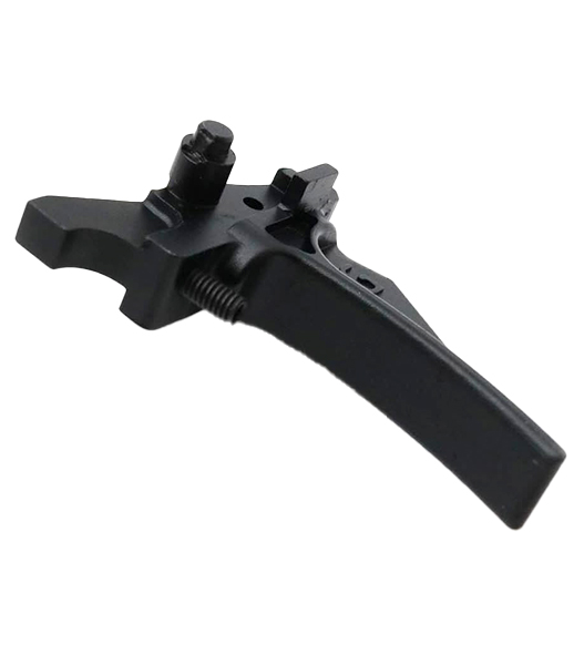 FCC製トリガーはイモネジの調整で発射後の遊びをなくすことができる設計ですが、スイッチとの位置関係などギアボックスやスイッチ基板により左右されますので、ヤスリ等で微調整しながら組み込んでください。
