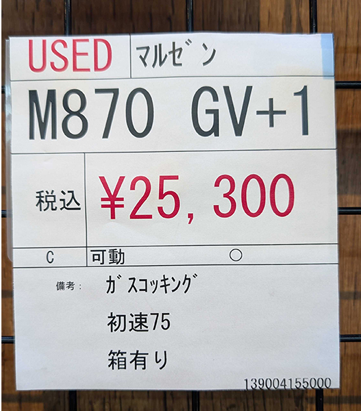 中古 ミリタリー USED マルゼン M870 GV+1 排莢式ショットガン Cランク