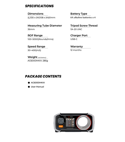ACETECH 弾速計 AC6000 MKⅢ BT CRONOGRAPH(クロノグラフ) Bluetooth機能付