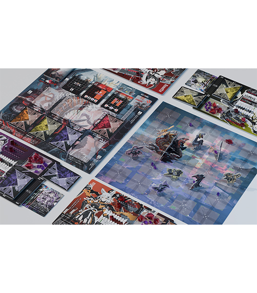 説明書×1冊、カード(63x88mm)×96枚、厚紙ボード×7枚、厚紙コマ×16体、厚紙チップ×16枚、アクリル石×96個、アクリルキューブ×14個