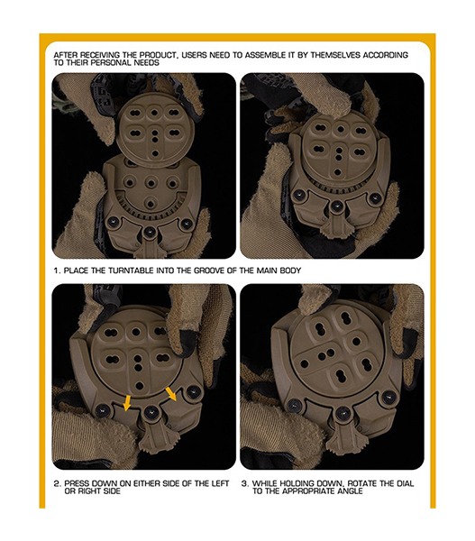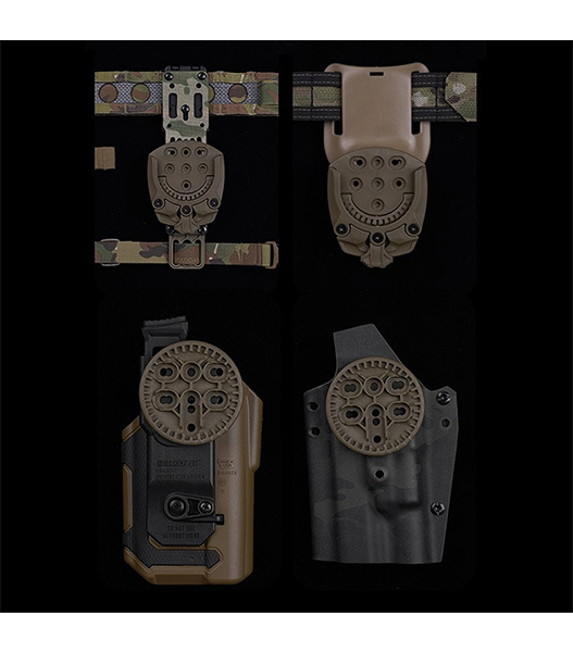インサートディスクにはブレードテックタイプや、ブラックホークタイプのホルスターを取り付けることができ、ベースとなるテックマウントレシーバーは、ブラックホークタイプやサファリランドタイプの各種マウントに取り付けることが可能です。