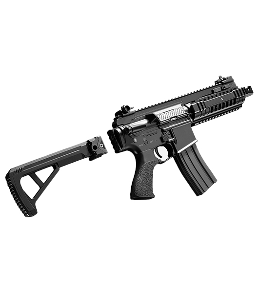 銃口を上下に動かしやすい、コンベックス(凸)型のスケルトンデザインとなっています。