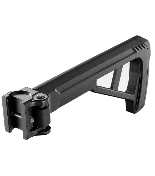電動ガンプラス『パトリオット プラス』のレイル付きリアストックベースに装着可能!取り付け基部には金属素材を採用し、折りたたみ機能も搭載。側面には別売の「QDスリングスイベル」に対応したQDホールを備えています。
