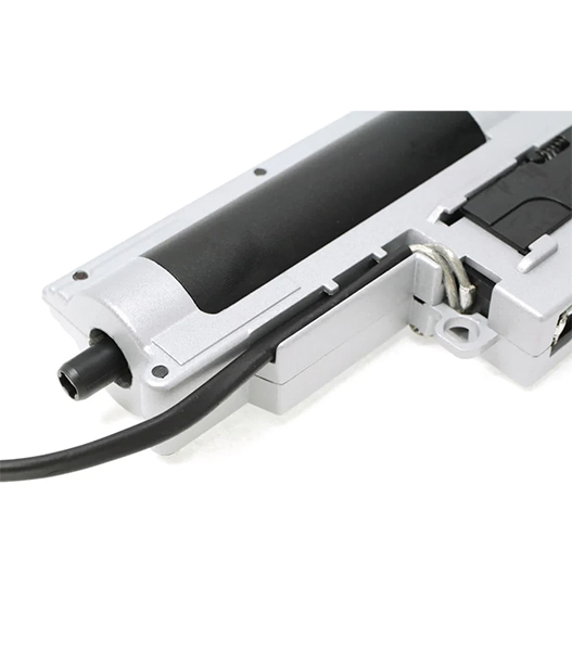 送りする際に組込んでありますスプリングは、駆動確認用の非常にレートの弱いスプリングとなります。本メカボックスを手にするPlayerさんの任意のバレルセッティングがあると思いますので、お好みのスプリングへ変更してください。スプリングはメカボックス後方から容易に交換できる仕様となっております。