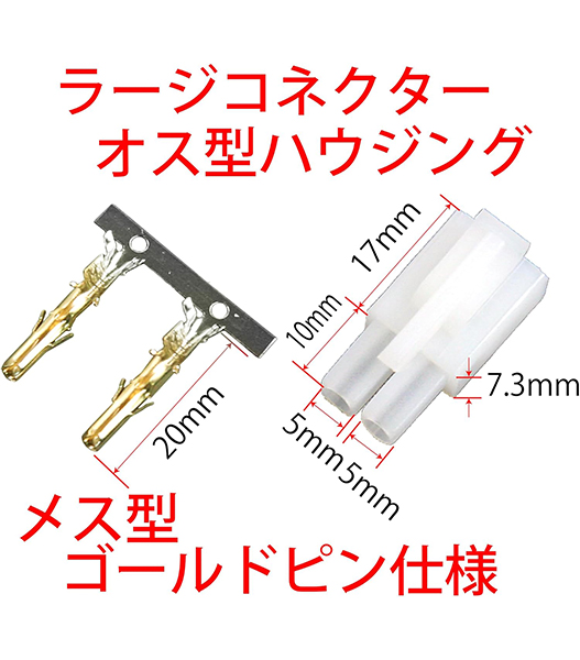 ラージコネクターのついたバッテリーをミニコネクターにする為の変換コネクターです。ミニバッテリー対応のガンにラージバッテリーを無加工で接続できます。ピンは金メッキを施し、対腐食と通電性に優れています。