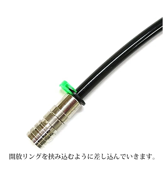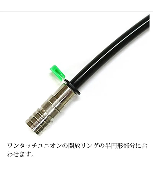 ●ワンタッチユニオンの開放リングの半円形部分に合わせます。