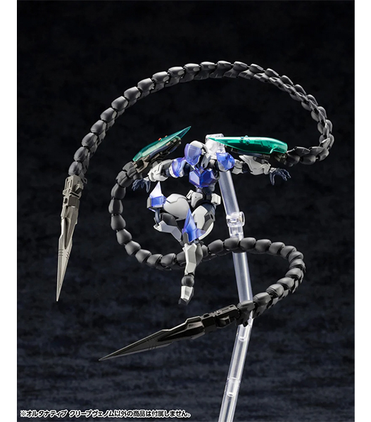 壽屋購入しやすい価格帯が魅力のヘキサギア“オルタナティブ”に全長340mmのシリーズ最長サイズを誇る「クリープヴェノム」が登場。毒蛇を模したボディは25もの節をワイヤーで連結する構造によりフレキシブルな可動を実現!両端に備えたヘキサグラムや付属するヘキサギア用グリップパーツ等、単体としてはもちろん武器やカスタムパーツとしても魅力的なオルタナティブです!