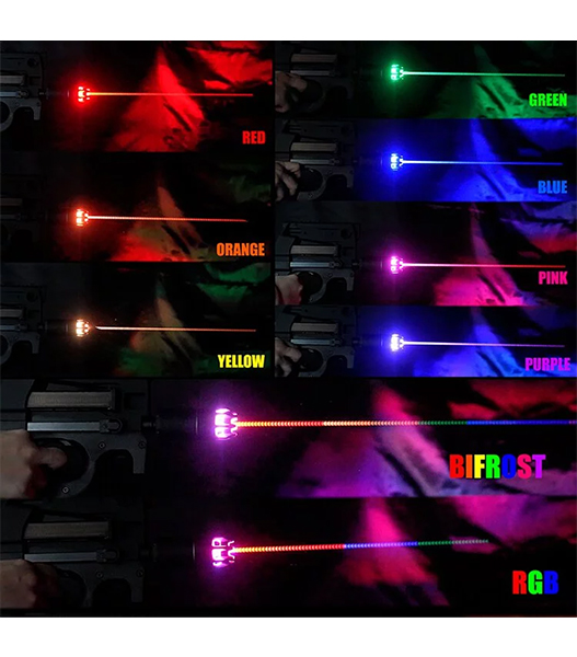 Bifrost Mは基本のトレーサーユニット機能に加え、銃口側に配置したLEDでマズルフラッシュを再現。
