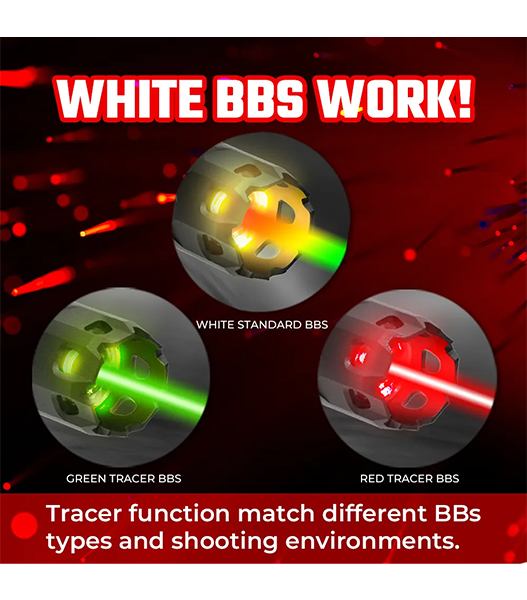 対応BB:グリーン/レッドのトレーサーBB弾、通常BB弾