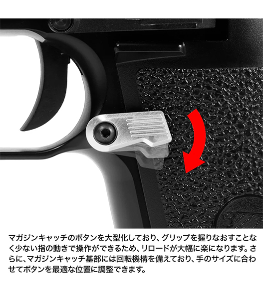 角度調節可能な大型マガジンキャッチで楽々リロード!