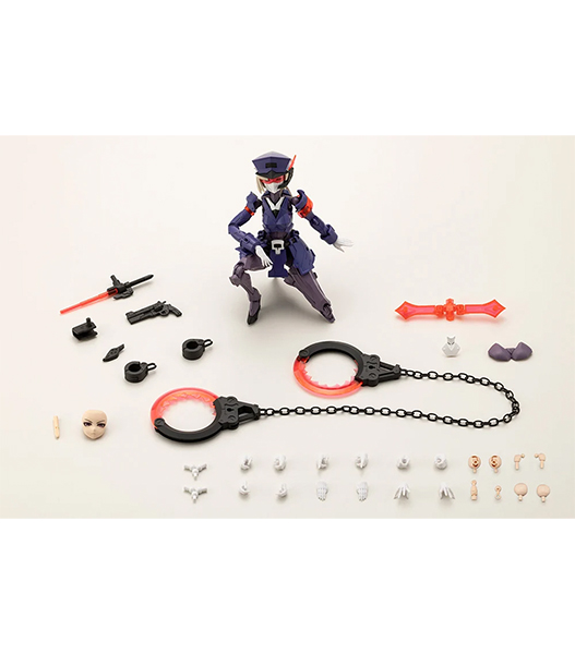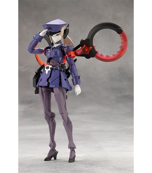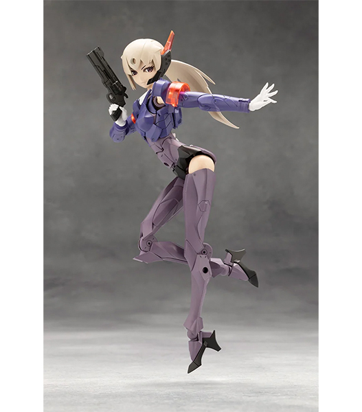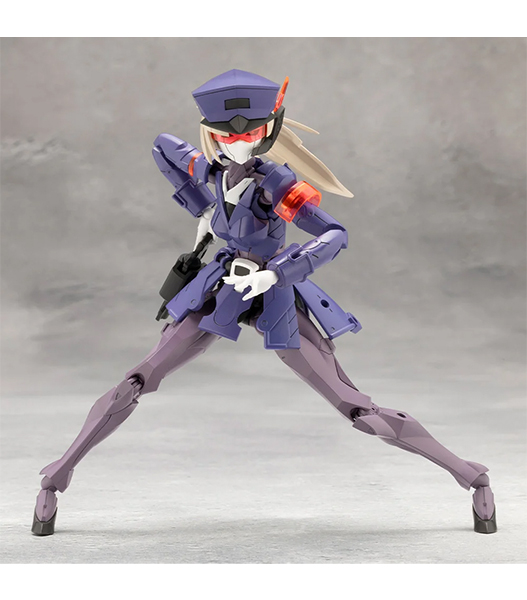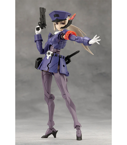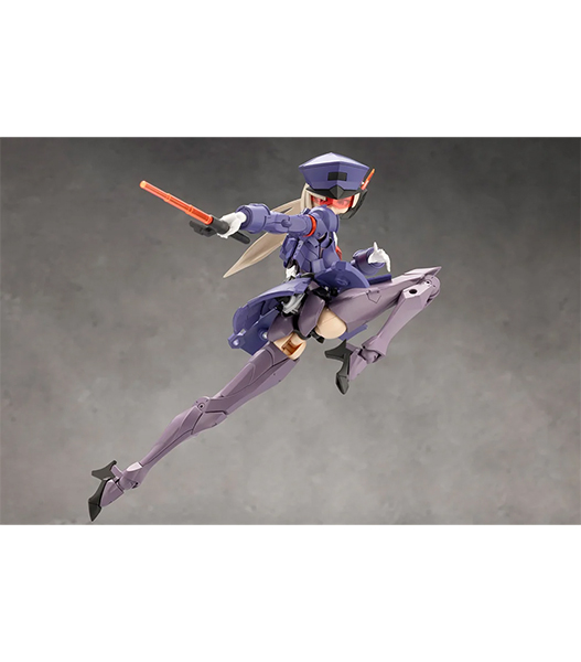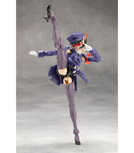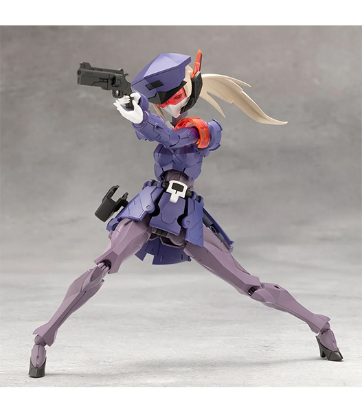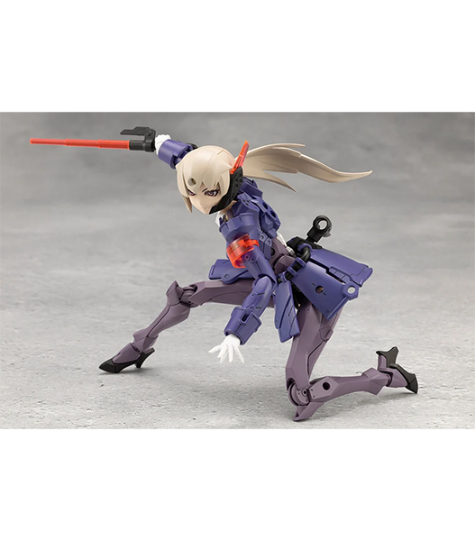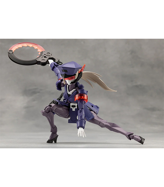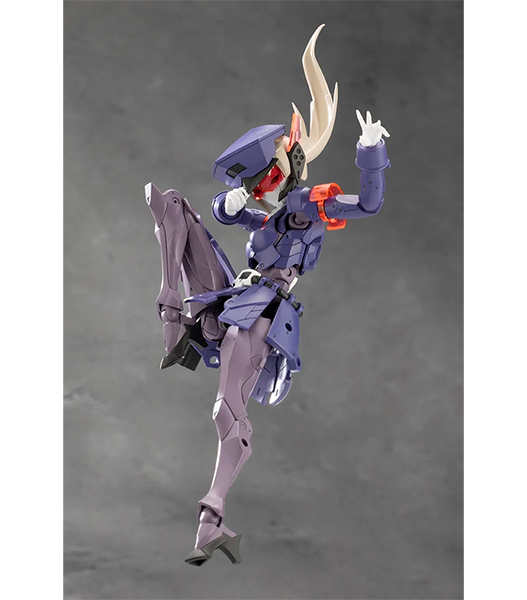本シリーズ最大のこだわりである可動ギミックは本体部分で全身約50カ所が可動します。ミニスカート型の装甲は6枚すべての装甲が個別に可動するため立膝や脚組み座りなど静かなポージングからハイキックや武器を使った斬撃ポーズなど幅広いアクションをお楽しみいただけます。