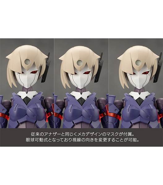 従来のアナザーと同じくメカデザインのマスクが付属。眼球可動式となっており視線の向きを変更することができます。もちろん創彩少女庭園のキャラクターへ取り付け可能。