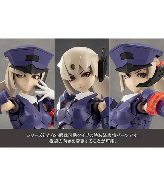 シリーズ初となる眼球可動タイプの塗装済表情パーツです。付属の治具を使って視線の向きを変更することが可能。頭部への取り付けは従来のマスクタイプと同じなので、創彩少女庭園シリーズとの互換性も健在です。