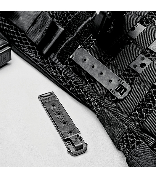 ベスト、ベルト、その他MOLLEウェビングを採用したあらゆるものに、ギアを簡単に装着できます。