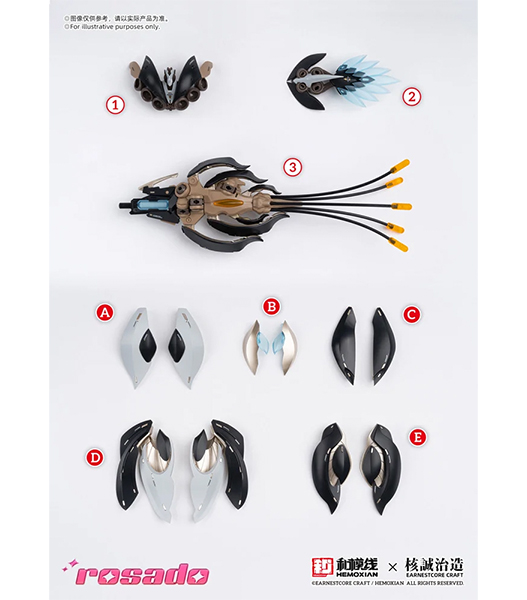 ・本体「人間擬態」と「戦闘形態」の二重システム、3種類の顔パーツが付属し、人型と機械型の顔が選べる。