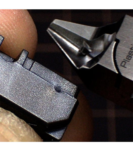 パーツに刃を沿わせてゲートを残さず切っても切断跡がえぐれないので、ヤスリやナイフによるゲート処理が最小限で済み、大幅な時間短縮ツールとして活躍します。