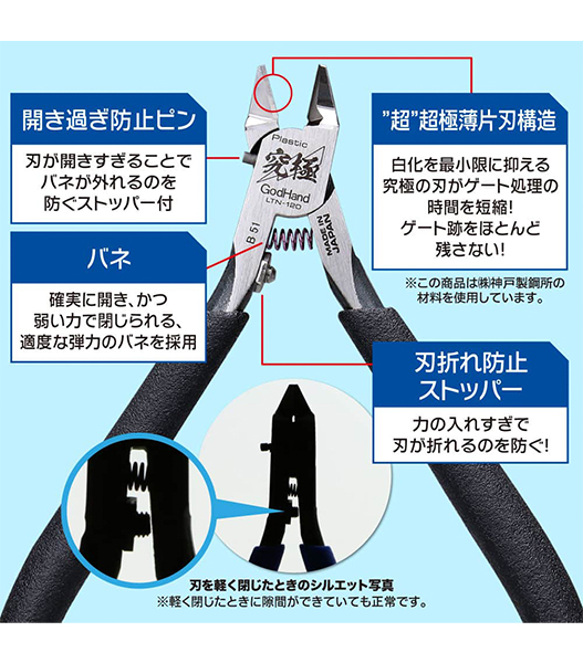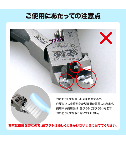 ※「GH-SPN-120 アルティメットニッパー」よりも薄い、”超”超極薄片刃であるため、取り扱いにはより注意が必要です。