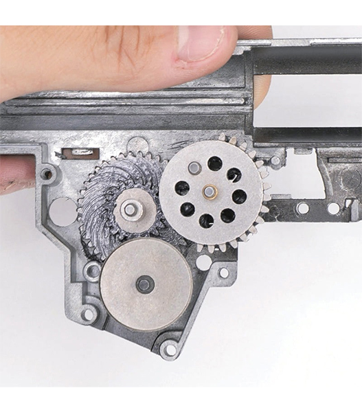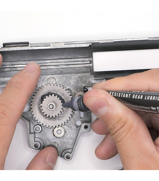 電動ガンの作動時の高回転、高負荷の熱や摩擦により通常のグリスでは粘度低下が発生し、 飛散したり、油膜切れを起こす場合があります。