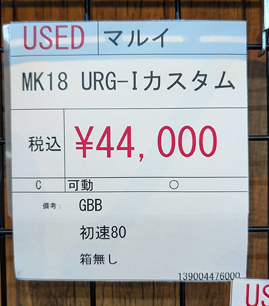 中古 ミリタリー USED マルイ MK18 URG-Iカスタム GBB Cランク