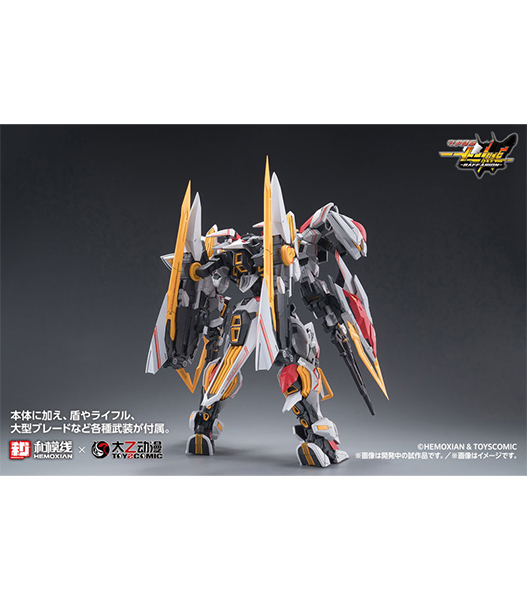 バファリオン本体に加え、盾やライフル、大型ブレードなど各種武装が付属します。