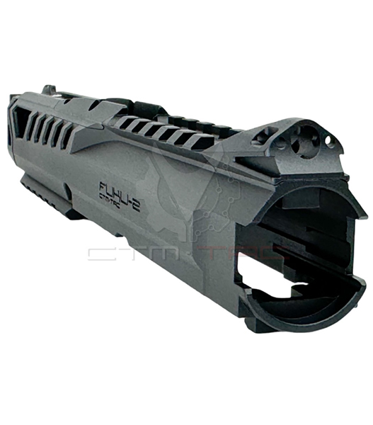 サメの形と美観からインスピレーションを得たデザインで、ロングとショートの 2 つのバージョンが レッドドットサイト用のスロットが含まれており、2 つの異なる仕様をサポートしています。 ピカティニーレールがあり、ウェポンライトなどの戦術的アクセサリを取り付けること ができます。