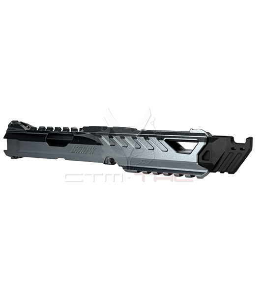 ・サメの形と美観からインスピレーションを得たデザインで、ロングとショートの 2 つのバージョンが レッドドットサイト用のスロットが含まれており、2 つの異なる仕様をサポートしています。 ピカティニーレールがあり、ウェポンライトなどの戦術的アクセサリを取り付けること ができます。