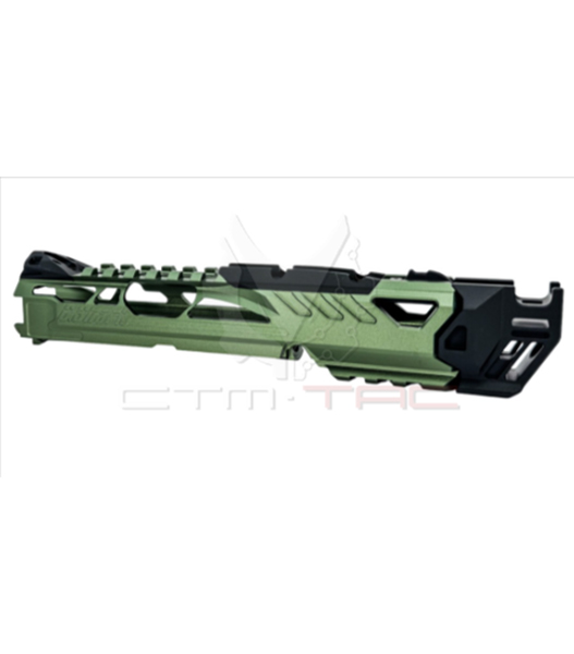 ?サメの形と美観からインスピレーションを得たデザインで、ロングとショートの 2 つのバージョンが レッドドットサイト用のスロットが含まれており、2 つの異なる仕様をサポートしています。 ピカティニーレールがあり、ウェポンライトなどの戦術的アクセサリを取り付けること ができます。
