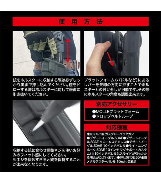 ●ハンドガンの素早いドローと収納、確実な保持を実現。